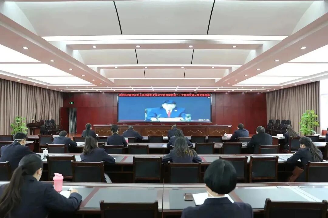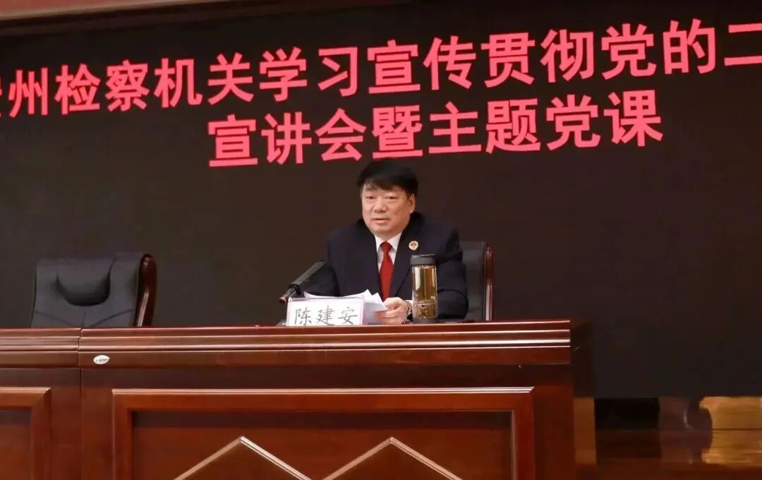 二是学习宣传贯彻党的二十大精神,贵在提升能力、转变作风。陈建安代理检察长强调,“一分部署,九分落实”,要把党的二十大擘画的规划图变为实景图,全州检察机关要坚定信心决心,通过发挥好州院的统筹谋划作用、发挥好领导干部的表率引领作用、发挥好先进典型的示范带动作用,持之以恒抓能力强本领;要自觉传承红色精神谱系,锲而不舍纠“四风”树新风,大力营造干事创业氛围,持之以恒抓作风强效能;要坚持大抓基层的鲜明导向,坚持全州一盘棋、上下一体化,持续深化落实领导联系基层、业务对口帮扶机制,加强对下指导,持续为基层解难题办实事,持之以恒抓基层强基础。