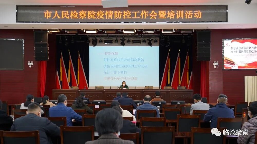 12月23日下午,市人民检察院召开疫情防控工作会暨疫情防治培训活动,全面贯彻落实疫情防控二十条措施、“新十条”优化措施和市委、市政府关于当前疫情防控工作的部署要求,对科学认识新冠肺炎、准确理解把握当前疫情防控政策措施、精准有效落实好个人和家庭防治措施以及社会防治策略进行了科普培训,对落实单位、家庭、个人责任,科学有效做好机关疫情防治工作作出了安排部署。