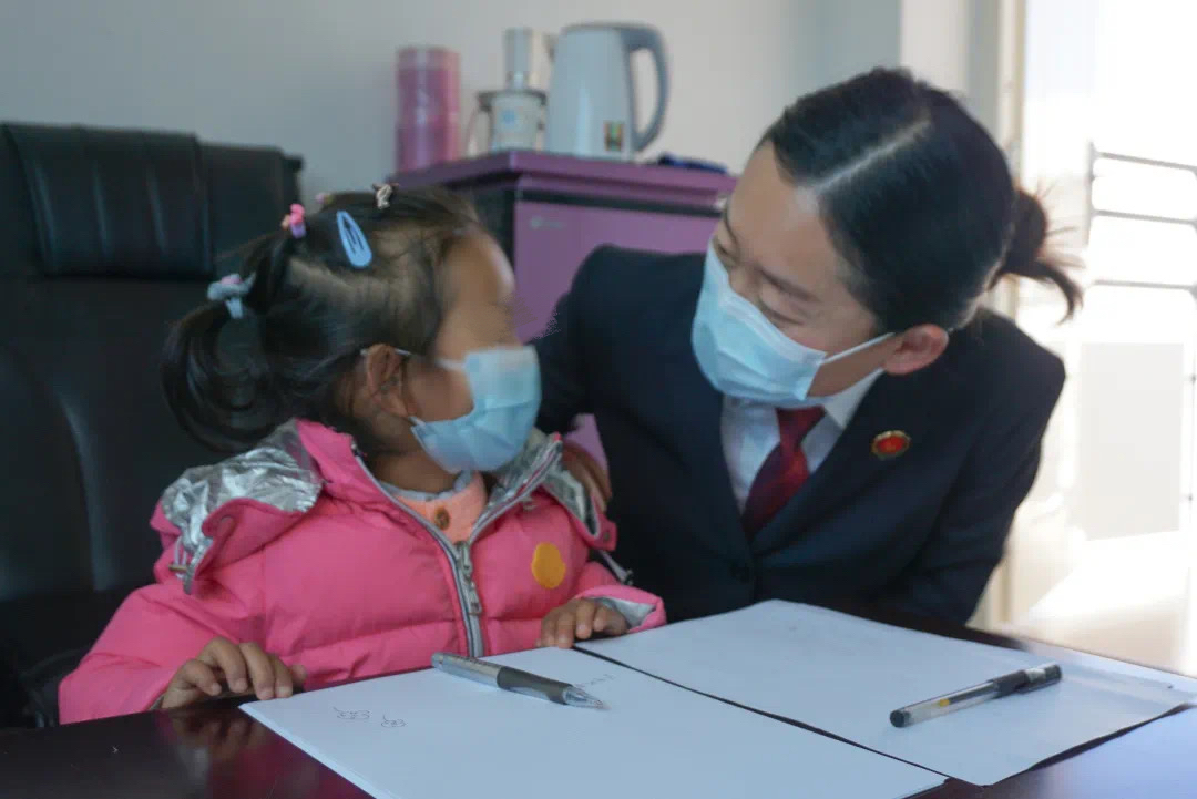 1月11日,云南省楚雄州禄丰市检察院办案团队,来到该州大姚县金碧镇某某村,对刑事被害人的女儿钱小洋(化名)的孤儿救助金发放等救助情况进行回访慰问。钱小洋的新抚养人钱梅梅(化名)放下手中的家务,边接过检察官送来的慰问品边答话。