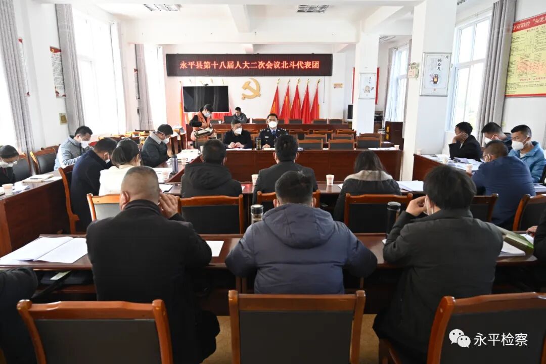 1月18日上午,县人民检察院党组书记、检察长蒙绍锋代表县人民检察院向永平县第十八届人民代表大会第二次会议作工作报告。18日下午—19日,县人民检察院派出9名干警赴7个代表团,听取人大代表对检察工作的意见建议。