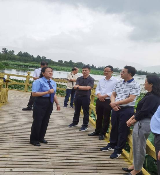 2020年8月5日,广西百色市政协副主席黄建平一行到365bet线上足球_网上注册送365的平台_日博365bet体育在线县开展协同推进公益诉讼检察工作专题调研。州政协社法委主任李玉梅、县政协副主席丁畅和、县检察院副检察长李玉昆及相关工作人员,一同前往右所镇东湖大树营湿地、茈碧湖镇草海湿地开展实地调研学习。