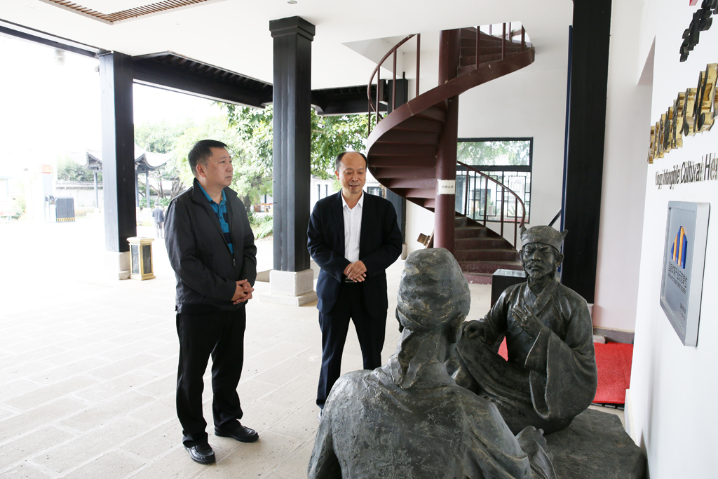 10月18日,保山市检察院党组书记、检察长杨玉奇来到金鸡永子文化园,走访全国人大代表、保山市国家级非遗传承人李国伟。