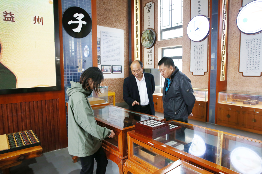 杨玉奇参观了永子文化园,了解永子围棋选料、生产、检验等制作流程,以及发展历史、文化传承等情况。被誉为围棋界国宝美誉的永子围棋是以保山南红玛瑙、玉石、翡翠、琥珀等为原料,采用保密配方和绝技熔炼,传统手工点“丹”而成。黑子对光照视,宛如墨玉,边闪翠环;白子对光细看,晶莹如脂,温润细腻,被世人称为棋中圣品。
