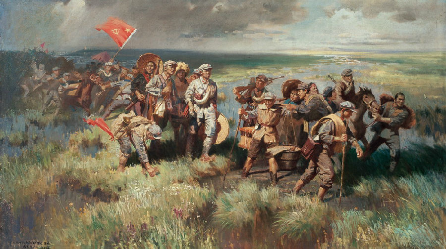 从首联开始,全诗就展开了两条思维线,构造了两个时空域,一个是客观的、现实的:“远征难”,有“万水千山”之多之险;一个是主观的、心理的:“不怕”“只等闲”。这样就构成了强烈的对比反衬,熔铸了全诗浩大的物理空间和壮阔的心理空间,奠定了全诗雄浑博大的基调。