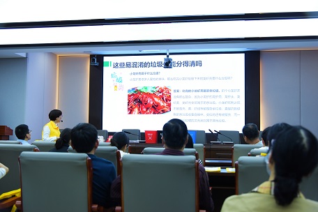 为进一步充分发挥党组织在深入推进垃圾分类工作中的引领、示范作用,活动还特别邀请了呈贡区城市管理局垃圾分类志愿者讲授垃圾分类知识,授课老师从中国垃圾分类的现状为引言,深入讲授了垃圾分类目的、原则、意义及垃圾处理的现状、如何做好垃圾分类等内容。