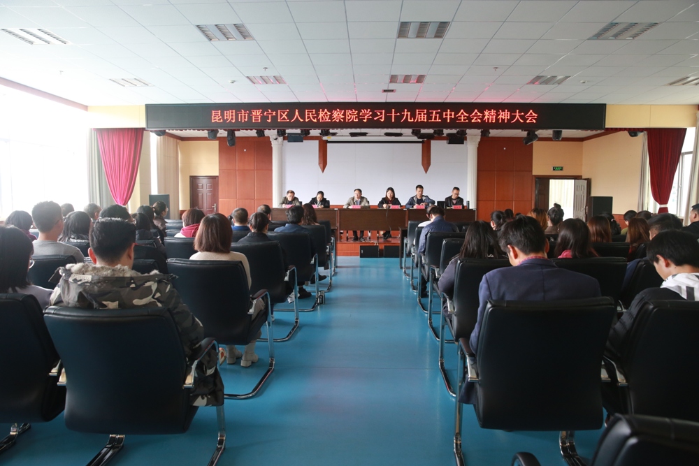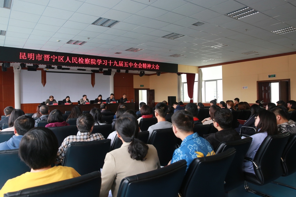 11月6日下午,晋宁区人民检察院召开全院干警大会,全文传达学习党的十九届五中全会公报,全体干警(含书记员)参加会议。