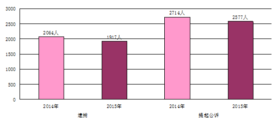 1.《检察工作报告》与《法院工作报告》有关数据不一致问题,主要在于统计的起止时间不一致。《检察工作报告》数据统计期间为2014年11月26日至2015年11月25日;《法院工作报告》数据统计期间为2014年12月21日至2015年12月31日。 2.起诉人数比逮捕人数多的原因:逮捕是为保障审判等刑事诉讼的顺利进行,根据法律规定对必须逮捕的犯罪嫌疑人或被告人采取的最严厉的羁押措施,而对根据法律规定不需要逮捕的嫌疑人或被告人则采取取保候审、监视居住等非羁押措施。故通常情况下,起诉的人数比逮捕的人数要多。