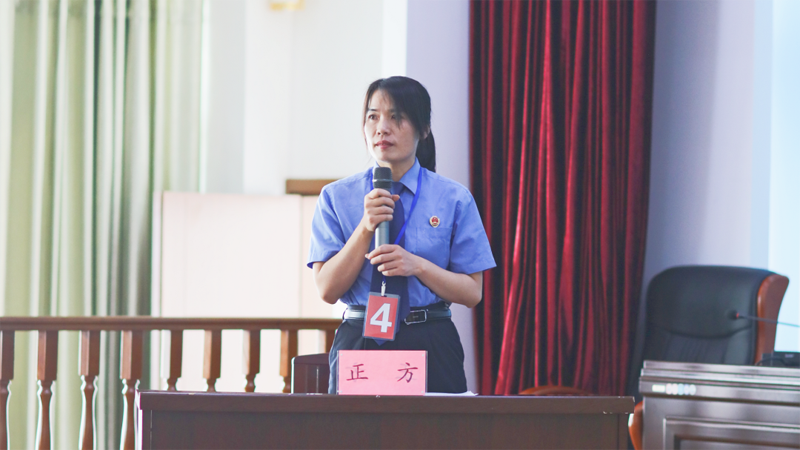 △论辩赛环节,正反双方进行论辩 并肩战——比赛中的搭档 在论辩赛环节,来自勐海县检察院的肖潇和周云,抽到同一论题,为互辩双方,工作中的队友此刻成为赛场上的对手,两人围绕案件焦点问题,饱含激情、唇枪舌战、你来我往,在赛场上成就彼此,将竞赛活动推向高潮。来自景洪市检察院的选手金都、曾蓉蓉是一对年轻夫妻,在本次竞赛中,由于两人都进入选拔赛,压力非常大,一方面担心发挥不好影响院里荣誉,辜负领导的信任,另一方面因准备竞赛把孩子交由保姆照顾放心不下,但他们依然相互支持、相互勉励,怀揣共同的信念和理想齐头并进,双双取得好成绩。