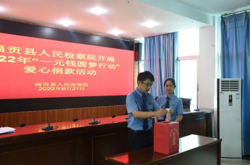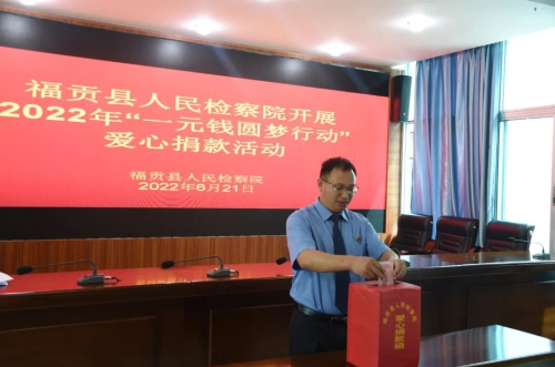 为进一步践行社会主义核心价值观,弘扬中华民族团结互助的传统美德,集聚社会力量积极奉献爱心、慷慨解囊,帮助福贡县困难大学生顺利完成学业。近日,福贡县人民检察院组织全院干警开展2022年“一元钱圆梦行动”爱心捐款活动。