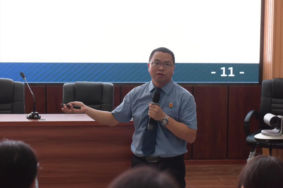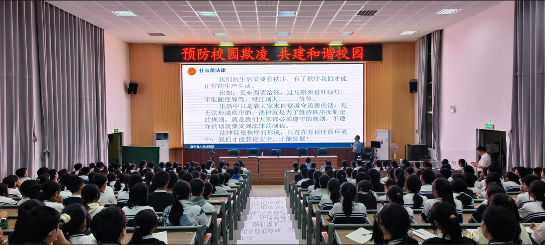 何宏伟检察长采取PPT展示形式,结合生动鲜活的真实案例、丰富的图片、有趣的短视频、通俗易懂的语言从什么是法律、如何用法律保护自身权益、向校园欺凌说不、青少年需要注意防范的几种犯罪行为四个方面,详细介绍了法律基础知识,重点讲解了校园欺凌、聚众斗殴、寻衅滋事、帮助信息网络犯罪青少年应重点预防的违法犯罪行为