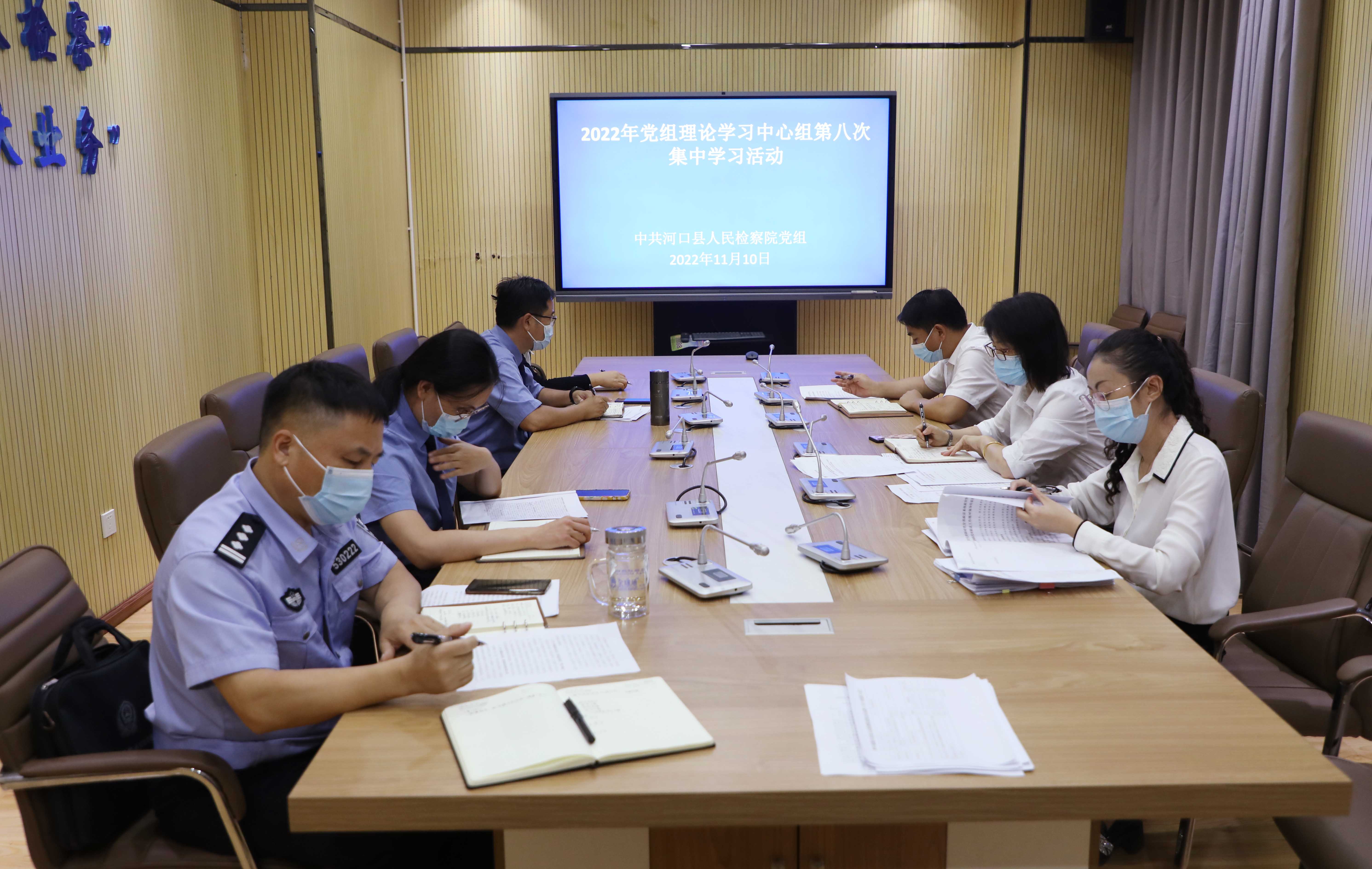 2022年11月10日晚上,河口县人民检察院开展2022年党组理论学习中心组第八次集中学习活动,会议由院党组书记、检察长倪亚萍主持,在家的党组成员、科级实职干部、各部门负责人参加集中学习。
