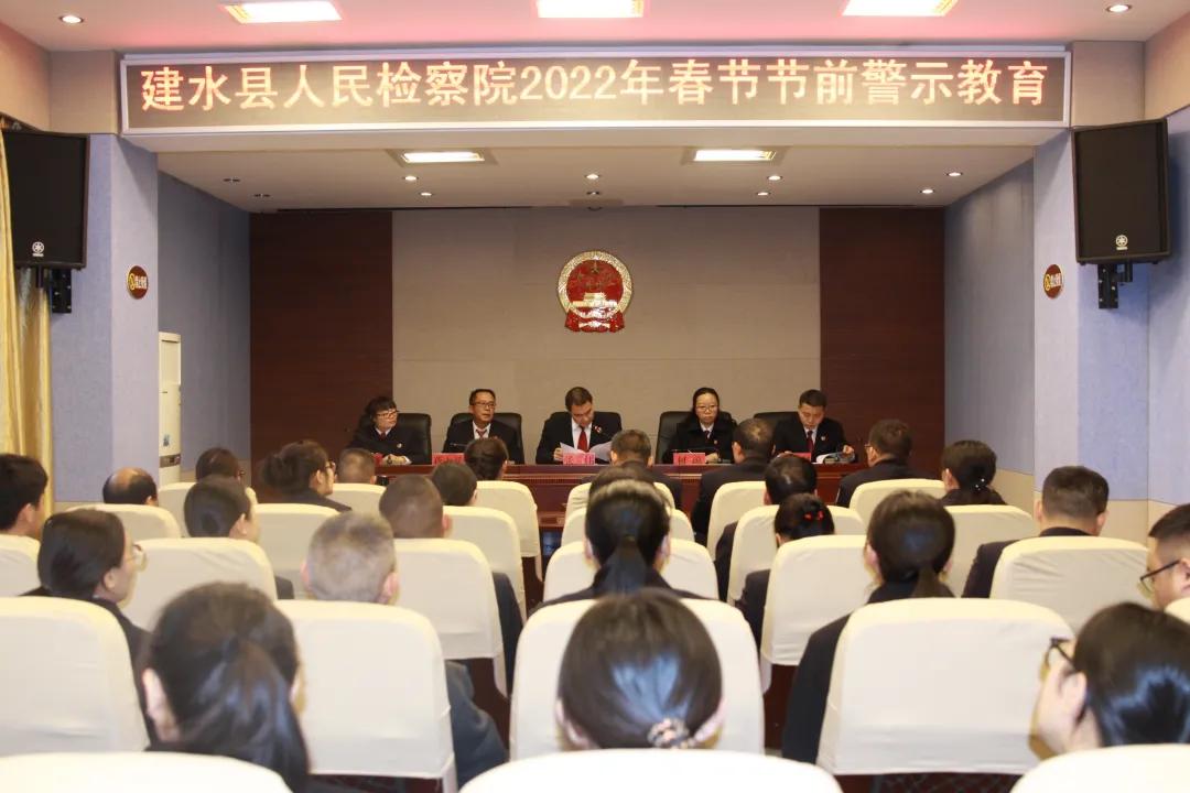 2022年春节将至,为深入贯彻落实中央八项规定及其实施细则精神,进一步严明节日期间廉政纪律,切实增强全体检察人员廉洁自律意识,1月30日,建水县人民检察院召开2022年春节节前警示教育大会。会议由党组成员、副检察长张伟主持,全院干警参加会议。
