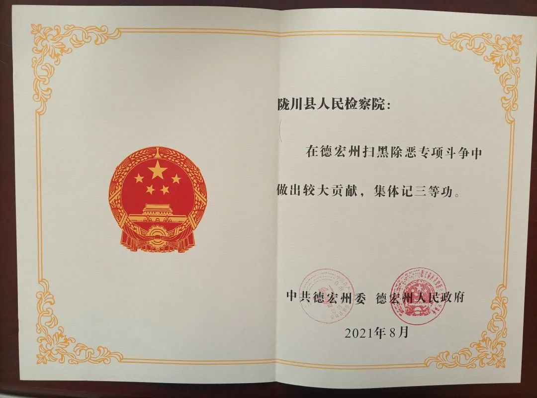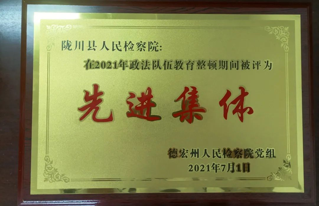 深入学习100位重要英雄模范先进事迹,努力挖掘身边典型,开展“陇检之星”评选活动,开设“向身边榜样学习”专栏,举办“担当新使命,争先作表率”先进事迹报告会,营造比学赶超的浓厚氛围,让干警学有榜样、赶有目标。2021年以来,我院被评为“云南省脱贫攻坚先进集体”、记集体三等功1次、“教育整顿先进集体”;1名干警荣获云南省“红土地之歌”演讲比赛三等奖,3名干警记扫黑除恶专项斗争、疫情防控嘉奖1次, 2名干警荣获德宏州检察机关十佳干警称号,2名干警入选全省民事行政公益检察人才工作库。