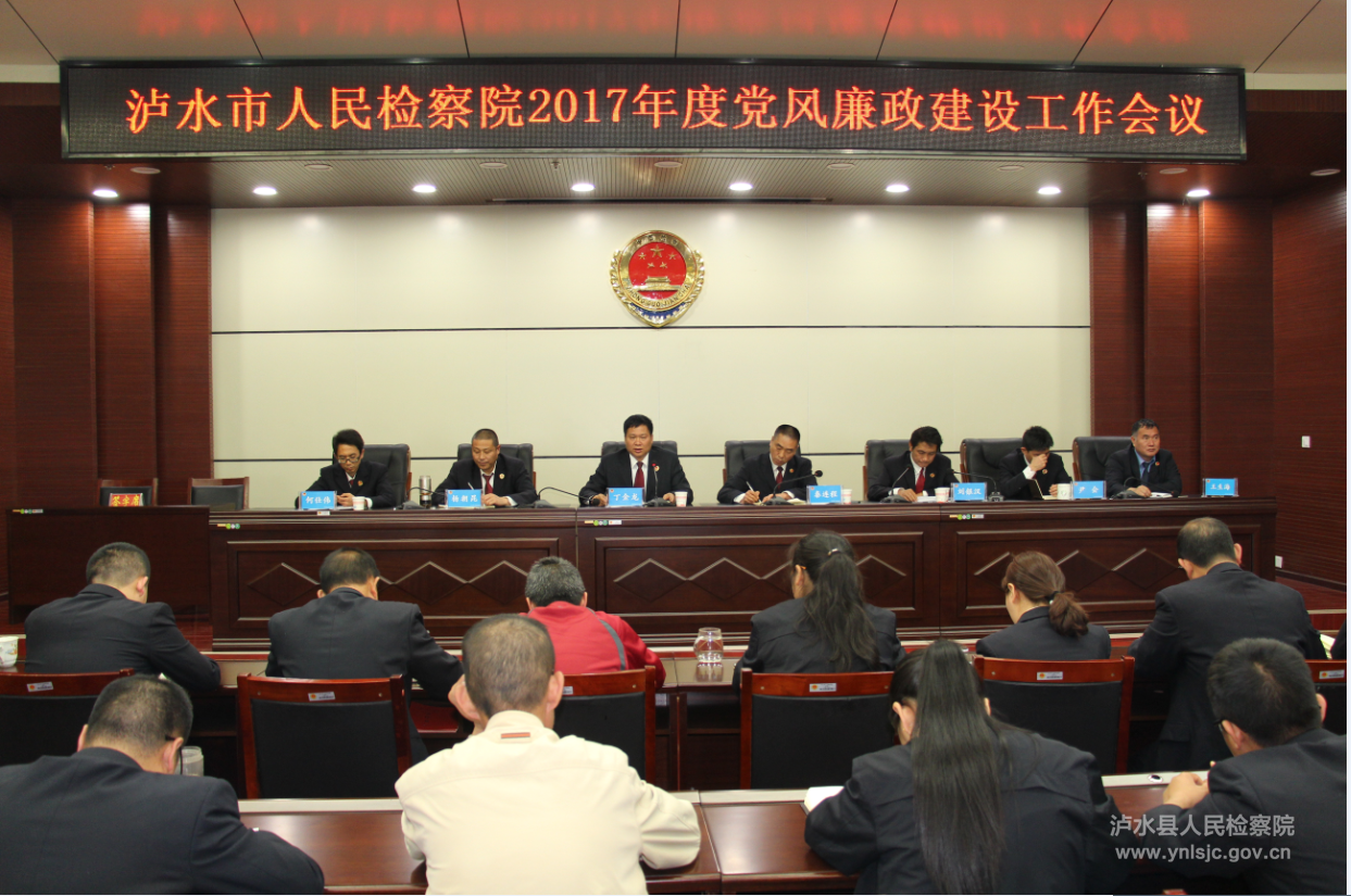3月28日下午,泸水市人民检察院召开党风廉政建设工作会议,主要安排部署了2017年党风廉政建设工作,签订了党风廉政目标责任书。会议由院党组成员、副检察长秦连程主持,院党组书记、检察长丁金龙作了重要讲话。全院干警参加了会议。