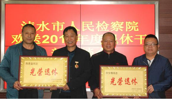 元月28日下午,市检察院组织召开欢送2018年度退休干部座谈会,院班子成员和干警代表与2位在2018年度退休的老同志进行座谈,热烈欢送他们光荣退休。