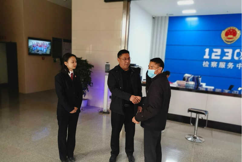 1月13日一大早,农民工童某平代表21名农民工将一面印有“尽职尽责历尽艰辛,心系百姓帮助农民工讨要工钱”的锦旗送到泸水市人民检察院,以此来表达感激之情,感谢检察机关依法履行检察监督职能,切实保障农民工的合法权益尽职履责。第三检察部全体人员的陪同下,代理检察长陈增武代表我院亲自接受农民工赠送的锦旗。