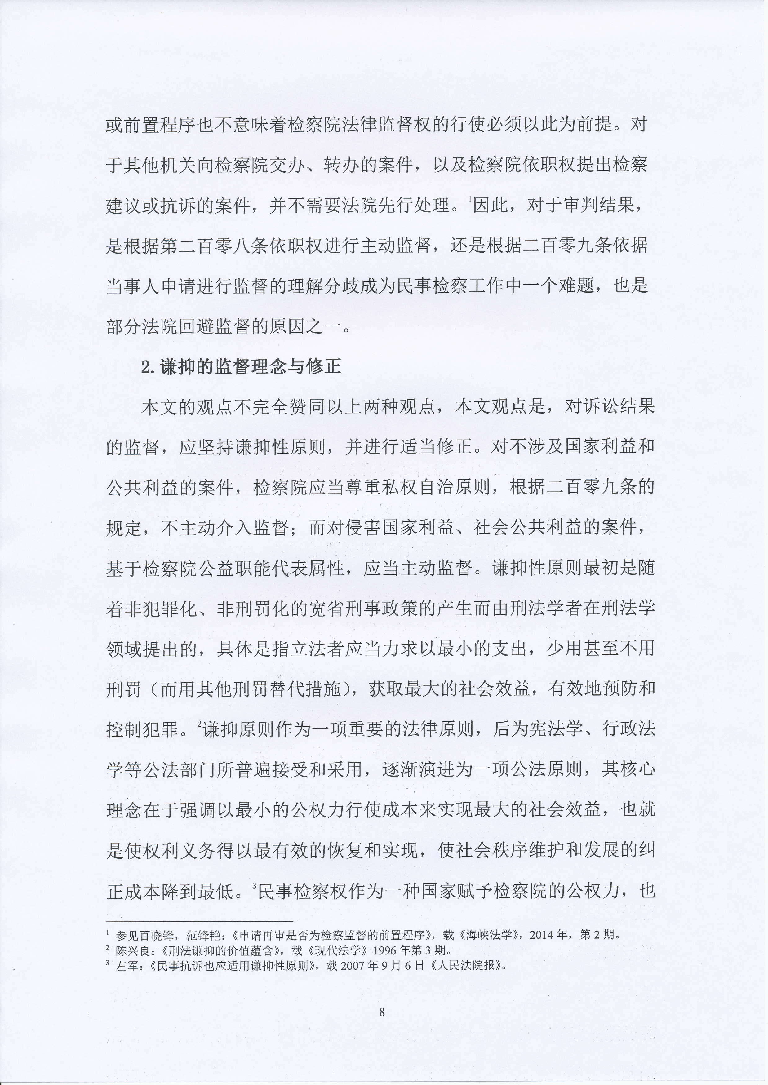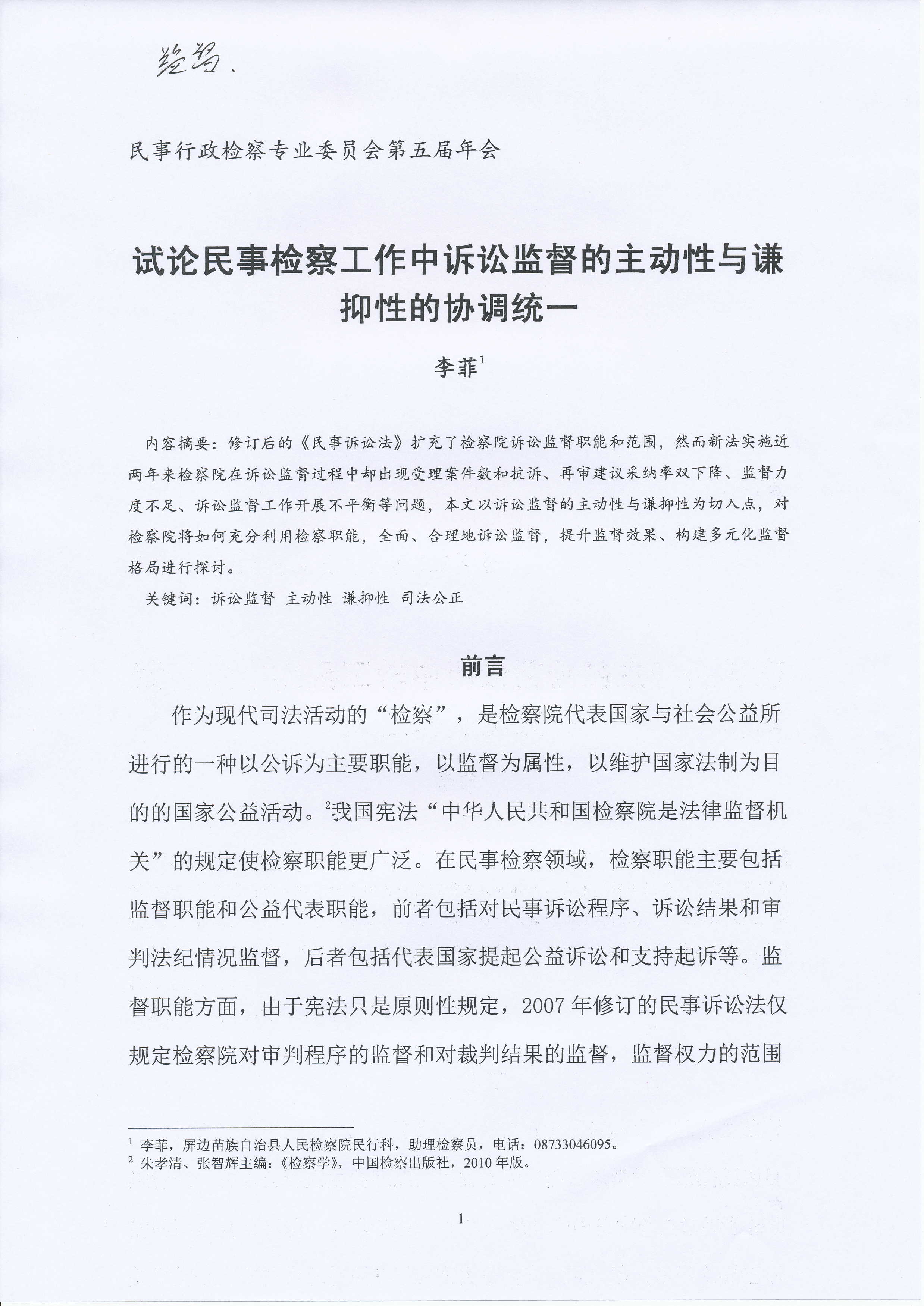全国民行第五届优秀论文:试论民事检察工作中诉讼监督的主动性与谦抑性的协调统一