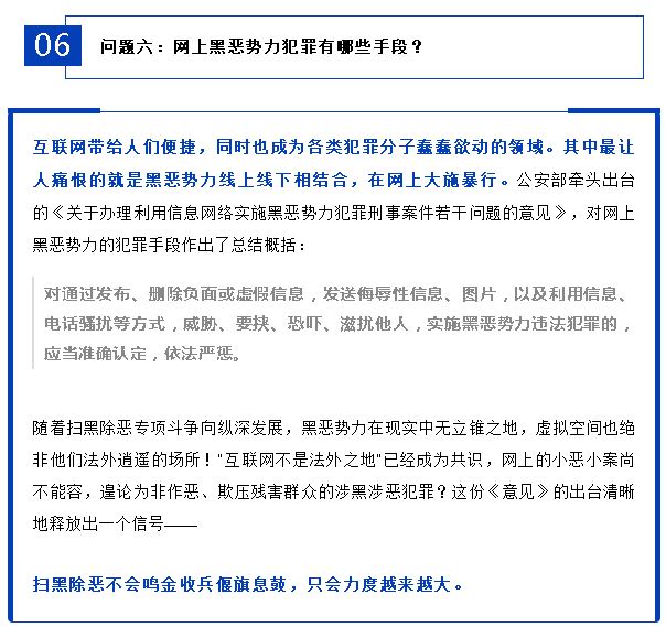当扫黑除恶专项斗争时间过半,进入到不进则退、慢进易退的新阶段,这些老百姓关心,而从前政策、法律又没有明确规定的问题,这批法律政策文件给出了清晰的答案。