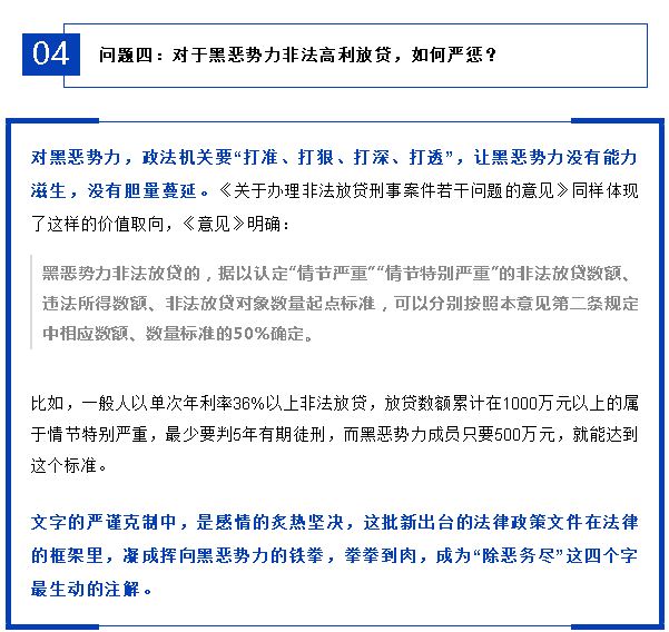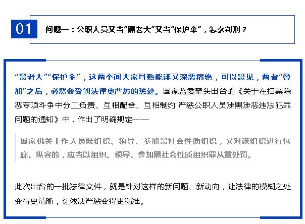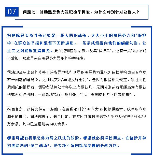当扫黑除恶专项斗争时间过半,进入到不进则退、慢进易退的新阶段,这些老百姓关心,而从前政策、法律又没有明确规定的问题,这批法律政策文件给出了清晰的答案。