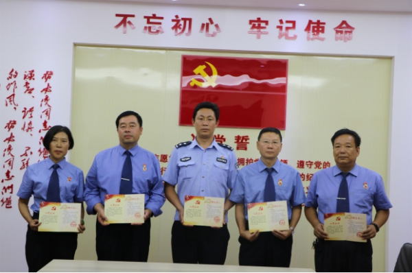 “主题党日+政治生日”。采取组织党员集体唱国歌、重温入党誓词、赠送“政治生日”纪念卡和上党课的形式,为5位入党日期临近建党节的党员同志过一个特殊的集体“生日”,让“生日”突出政治性,让“生日”充满党味。在神圣的国歌声中、在庄严的入党宣誓中、在庄重的党课的洗礼下,让党员们牢记入党誓言,终身践行入党誓词,让党员们不忘入党初心、牢记入党使命。