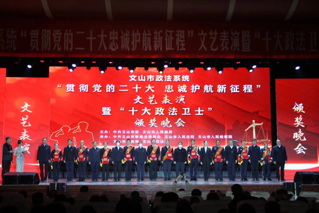 2022年,文山市人民检察院坚持为大局服务、为人民司法,各项检察工作取得新进展、新突破,各项工作业绩得到市委市政府肯定。刘腾元、罗苑菊检察官获评“十大政法卫士”荣誉称号,王靖宇、张宁被表彰为“党的二十大安保维稳先进个人”。