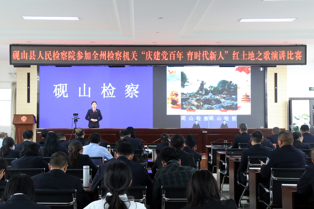 为认真做好政法队伍教育整顿学习教育环节相关工作,不断提高干警的政治判断力、政治领悟力和政治执行力,激发干警干在实处、走在前列的激情和动力,2021年3月29日,文山州人民检察院举办“庆建党百年·育时代新人”红土地之歌演讲比赛。