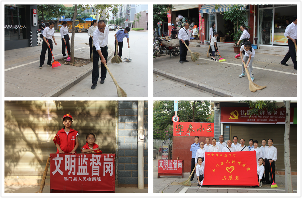 四是开展卫生整治志愿服务活动。观看视频结束后,组织全体党员和干警子女到单位责任路段开展巡查、劝导、整治和卫生保洁工作等志愿服务活动,在我县为迎接国家卫生县城复审的关键时期,组织青少年开展“创卫”活动,不仅为社区居民营造清洁、文明的生活环境,也让青少年志愿者在劳动中懂得环卫工人的辛劳,从而知道创建卫生县城的不易,引导他们养成爱护环境卫生的好习惯。