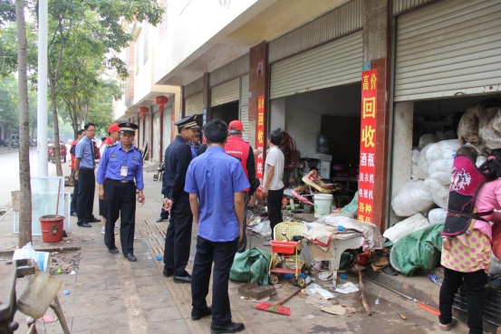 责任路段和顺街存在多家废品回收商铺占道经营现象,且环境卫生较差,严重影响城市环境及周边居民生活环境。整治废品回收点为此次联合行动工作重点,我院干警积极参与,帮助商户一起清理门前杂物,督促其将回收废品进行收整处理,清理门前垃圾,清洗地面污垢,做到“门前三包”。向商户宣传普及爱国卫生“7个专项行动”、疫情防控和健康科普等宣传,促进养成良好卫生习惯。