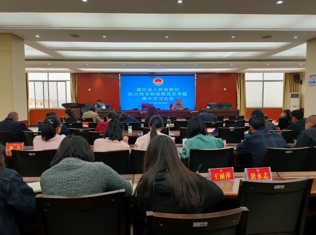 3月30日,盈江县人民检察院召开队伍教育整顿暨党史专题集中学习会议,党组成员、办公室主任段磊主持会议,党组班子成员、全体干警、合同制书记员参加了会议。
